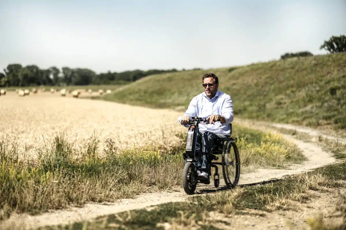 Wenn eine Kundin oder ein Kunde sich für ein solches Rollstuhlzuggerät entscheidet, bietet das Sanitätshaus Klein zunächst immer eine Probefahrt an, in der geprüft wird, ob das Produkt wirklich den individuellen Anforderungen entspricht. Im Nachgang entscheidet sich dann, welcher Weg gegangen wird, also ob eine ärztliche Verordnung eingeholt und ein Antrag auf Kostenübernahme gestellt wird oder das Gerät lediglich für den Freizeitgebrauch gekauft wird. Hier gibt es bei entsprechender Indikation auch einen Mittelweg, wie Olaf Jakobs berichtet: „Über die sogenannten Fallpauschalen, das sind Festpreise für elektrische Hilfsmittel, können sich Kundinnen und Kunden den Betrag anrechnen lassen, selbst etwas dazuzahlen und das Zuggerät damit käuflich erwerben.“ Denn ob medizinisch notwendig oder nicht: Die Liste der Vorteile ist lang und der Zugewinn an Lebensqualität groß.
